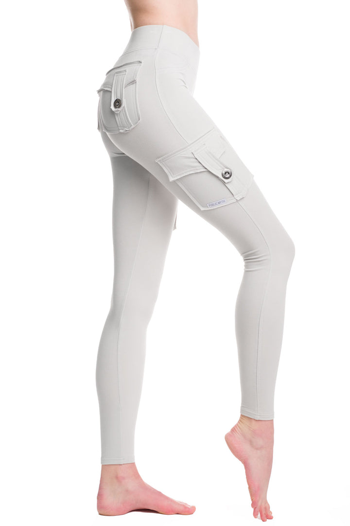 The Bamboo Pocket Legging features four buttoned cargo style pockets with raw edge detailing and a 2.5 inch elastic waistband. A must-have for all wardrobes, these eco-friendly leggings create a dynamic, flattering look! Made from a luxurious bamboo cotton french terry blend.