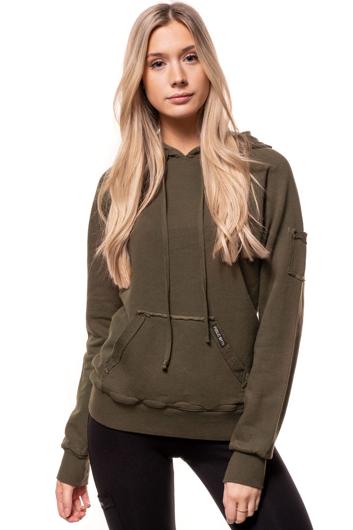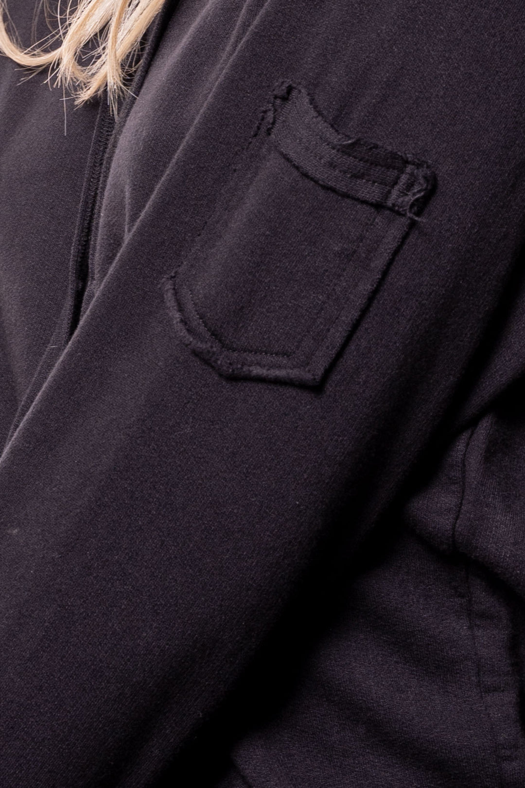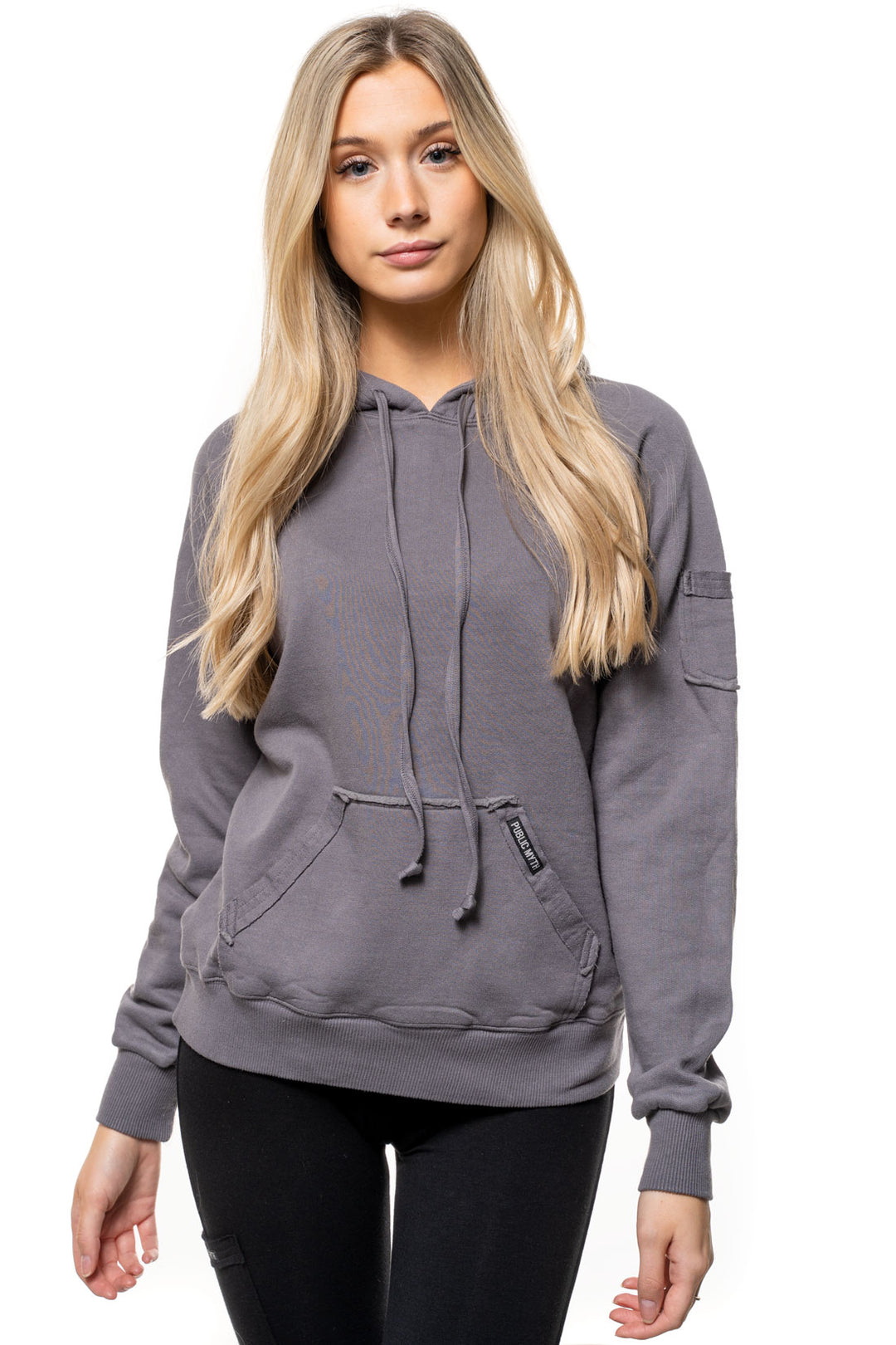 Our Organic Cargo Hoodie is what your closet needs this season. This relaxed fit essential is made from our luxuriously soft organic cotton/bamboo fleece, keeping you warm all season long. Featuring a raw edge front kangaroo pocket as well as sleeve pocket, you’ll have plenty of space to keep your essentials. The hood also features a raw edge band and drawstrings for added detail. The banded cuffs and waistband are ribbed for added comfort