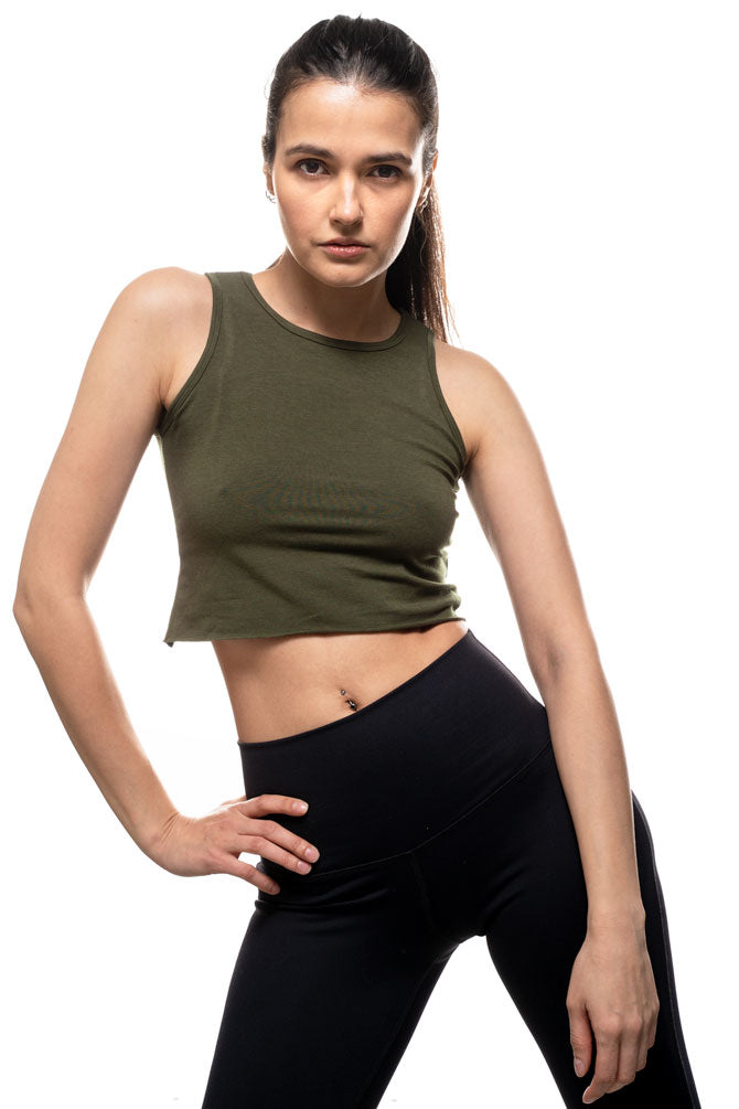 The Bamboo Crop Top is a versatile wardrobe staple featuring a raw edge hem and classic round neckline. Made from soft and breathable bamboo cotton fabric. It is a relaxed fit that is perfect for layering over any of our sports bras or on it's own.