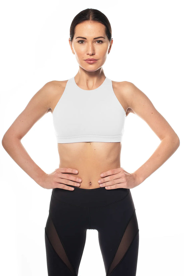 Turn up the heat during your next workout and shine bright in this Mid Compression Nylon Spandex sports bra. Made with moisture wicking and breathable material that will allow you to glow worry-free. Featuring soft, supportive criss cross strap detailing that will surely let you sweat in style.